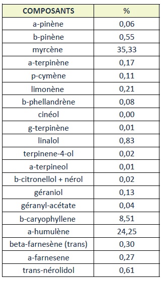Son niveau d’huile myrcène est assez élevé (entre 50 et 60%), ce qui en fait un houblon très expressif, très frais.